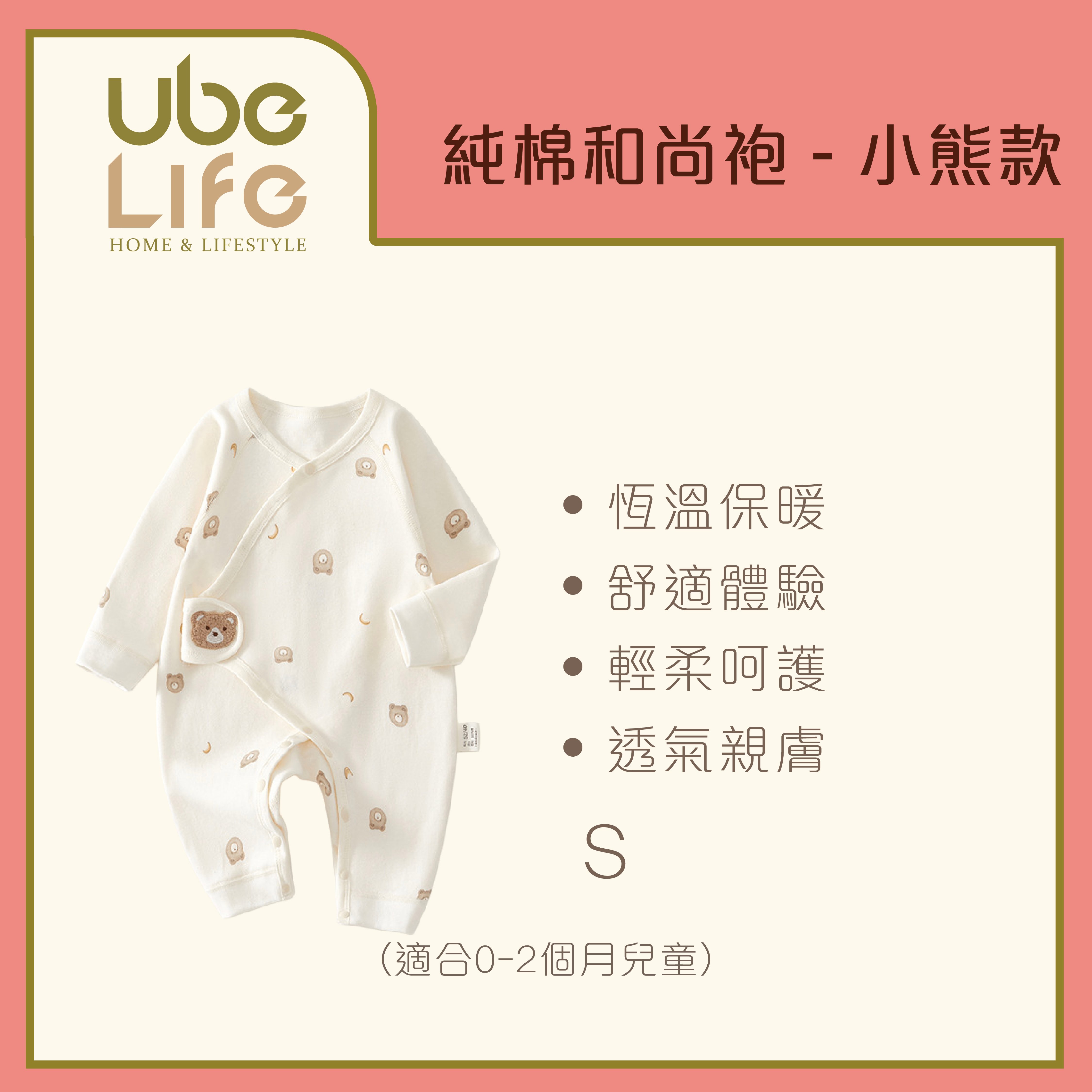 純棉和尚袍 - 小熊款 (S碼【建議0-2個月】/ M碼【建議1-3個月】/ L碼【建議3-6個月】可選)