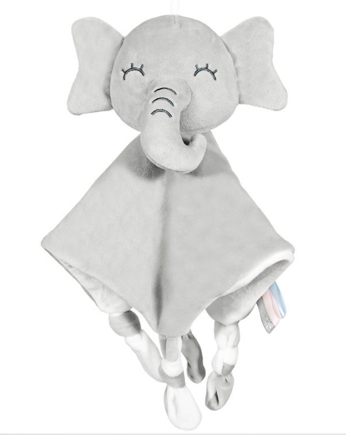 【趣味設計】舒適的大象抱抱,四個角落打結設計刺激觸覺,兩隻耳朵內建紙環。