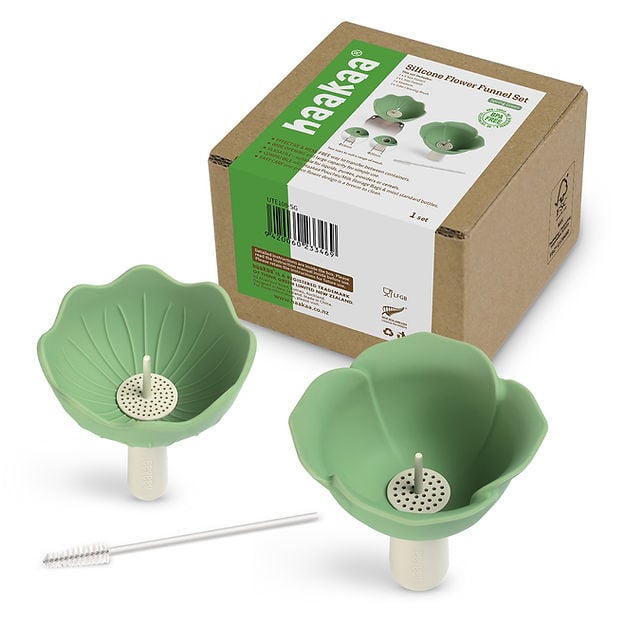 使用可愛的Haakaa矽膠花朵漏斗組合,即可快速輕鬆地倒取液體、果泥、粉末或穀物進入容器中!本組合包含兩種不同尺寸的漏斗及濾網,適合多種使用需求,讓您輕鬆倒裝自製食品或批量物品,避免桌面灑漏弄髒。