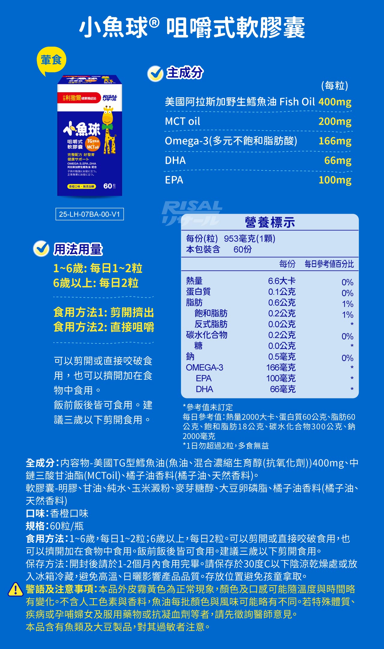 本產品含有魚類相關製品,對其過敏者注意。請諮詢專業醫生建議後食用。