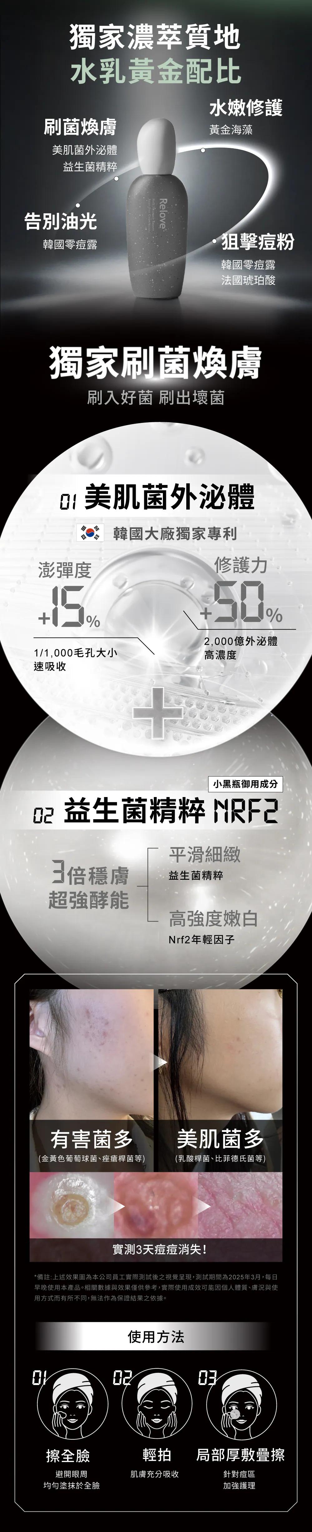 步驟一:按壓取適量零痘濃萃,均勻塗抹於全臉(避開眼周)。
