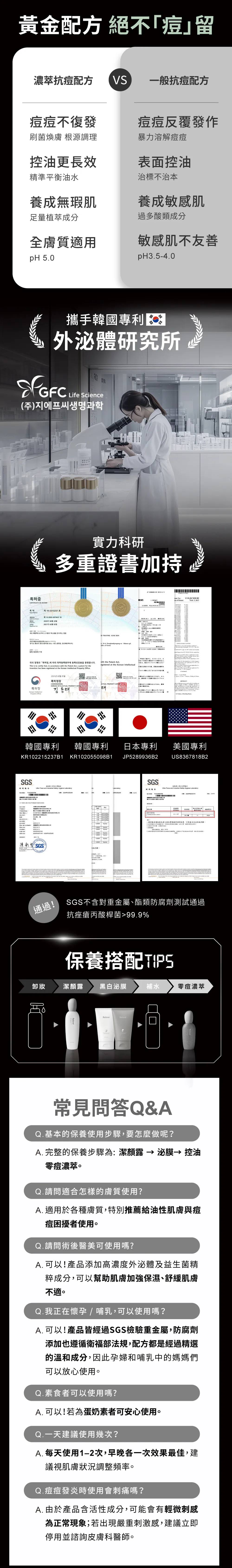 A:完整的保養步驟為:潔顏露→泌膜→控油零痘濃萃。