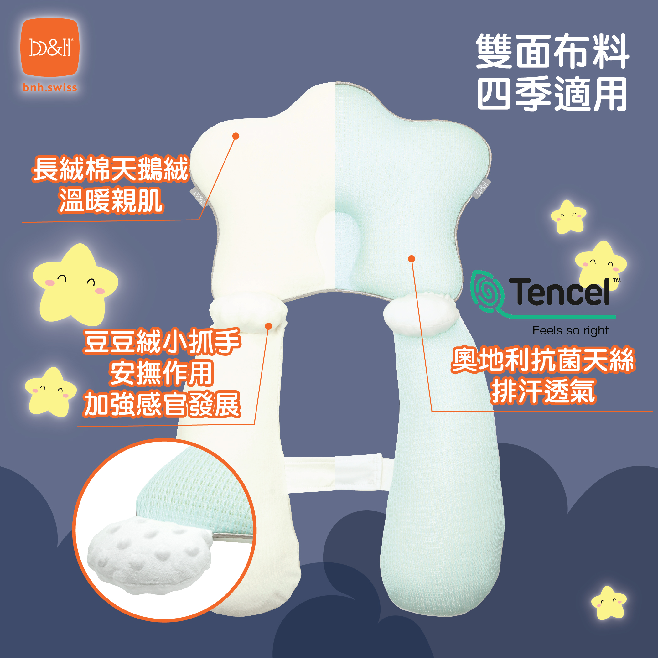 - 隨時可把定位枕拆下清洗.  隨寶寶長大, 定位枕可變做攬枕