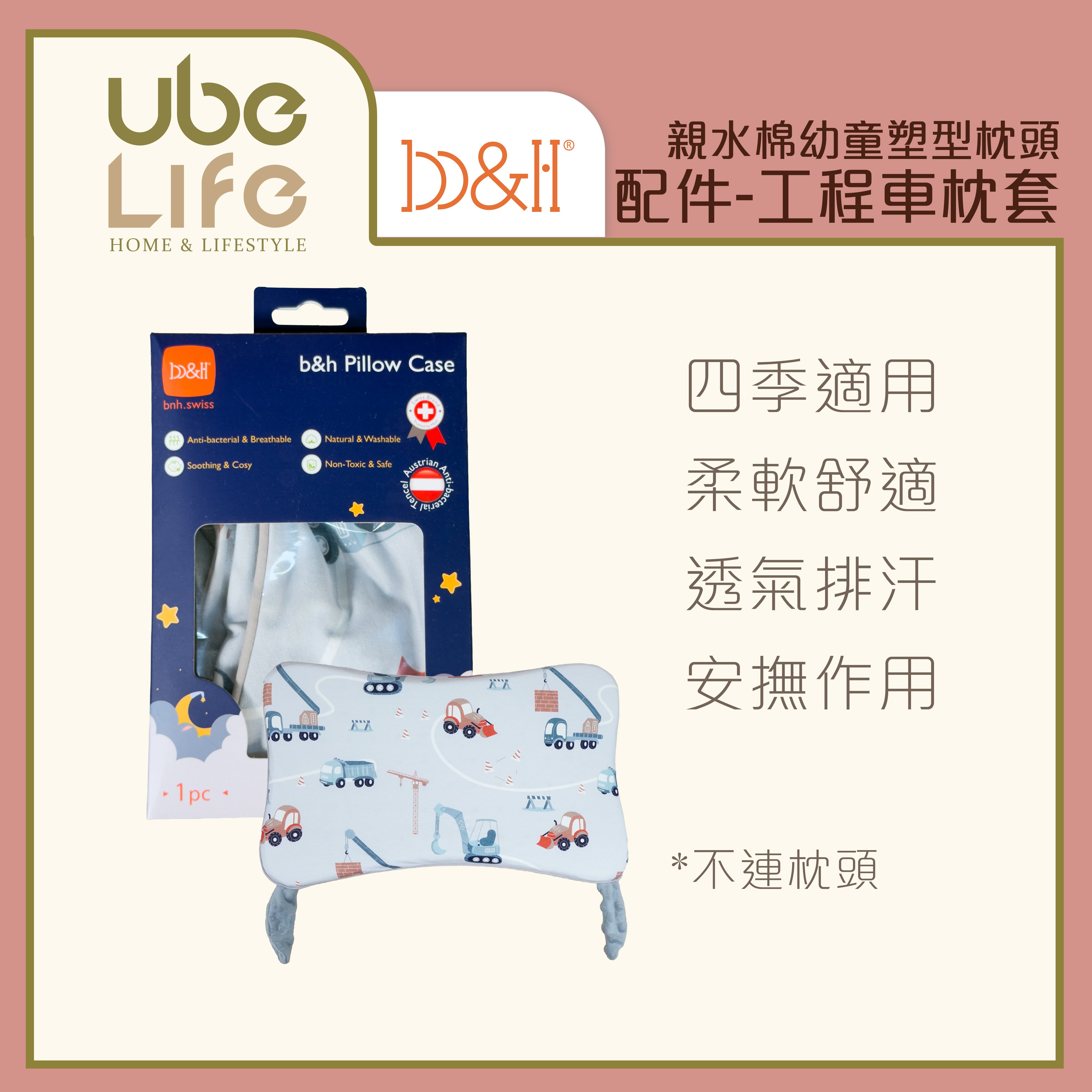 b&h 親水棉幼童塑型枕頭(6個月-7歲) 配件 - 枕套(不連枕頭) - 工程車