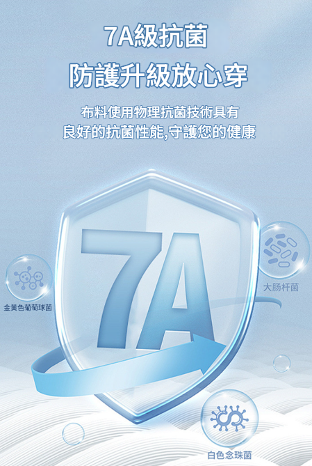 產品特色: 天然材質,柔軟舒適,透氣性佳,7A級抗菌效果。