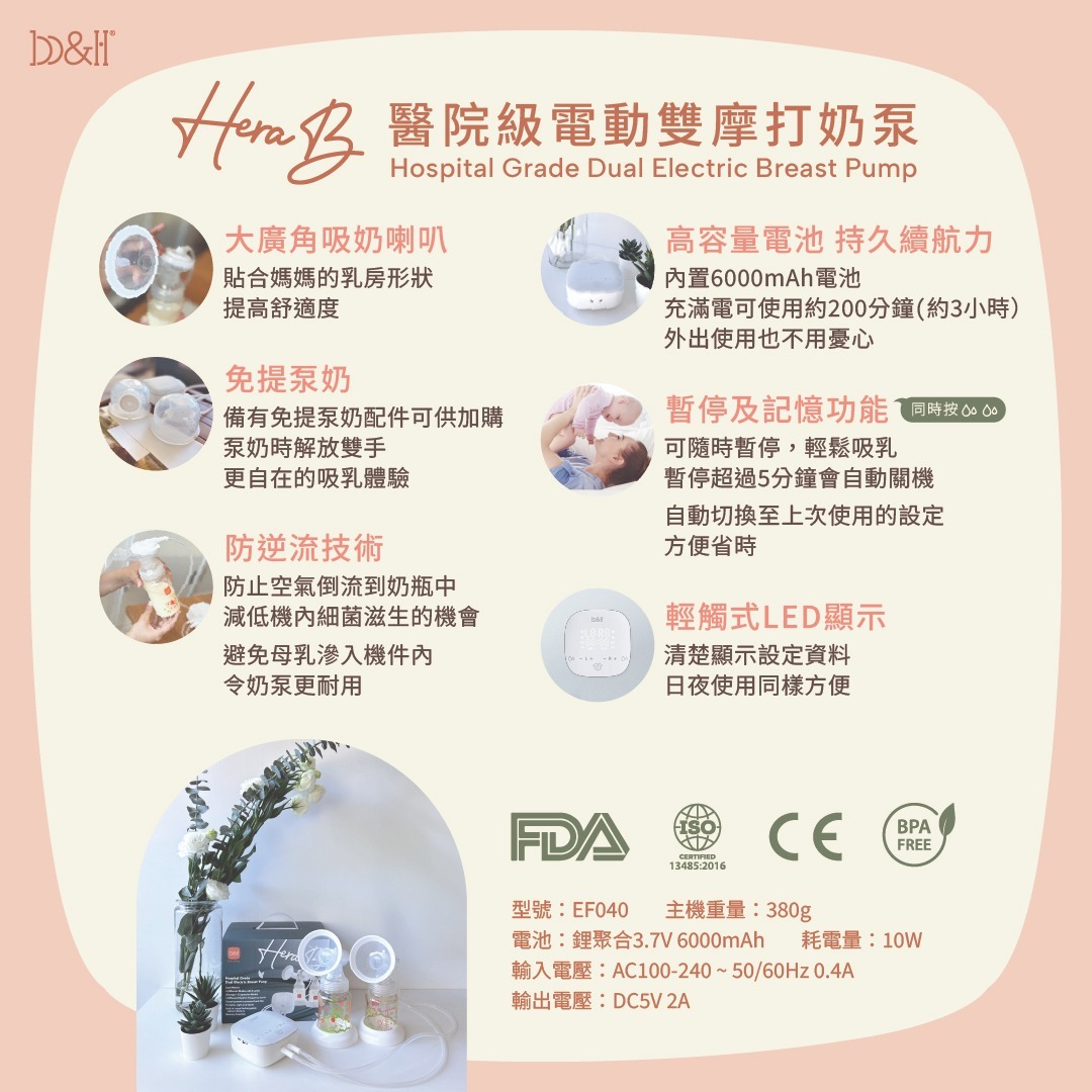 b&h Hera B 醫院級 電動雙摩打奶泵 (配1對24mm 喇叭)